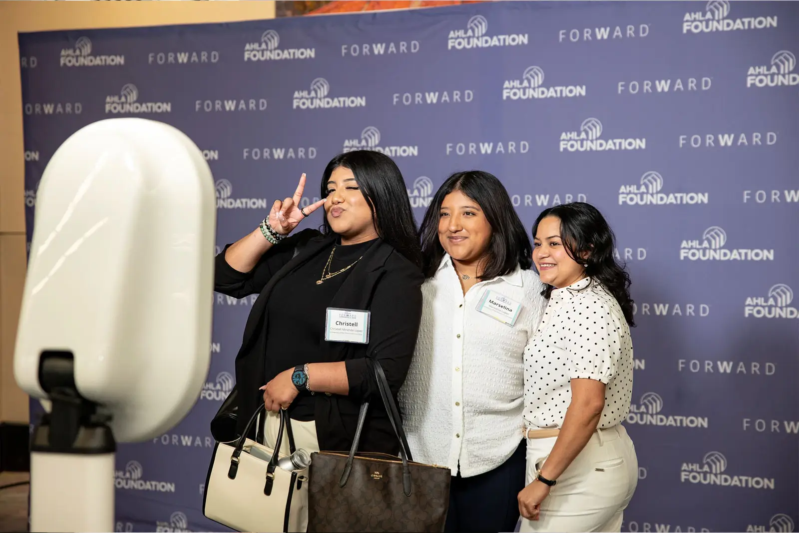 Step & Repeat photo activations feature a professional photographer and a branded backdrop. Images are delivered via an online gallery within 24 hours, with the option to upgrade to instant SMS image sharing. This option is best suited for more formal occasions such as galas, award ceremonies, and events with larger guest counts.